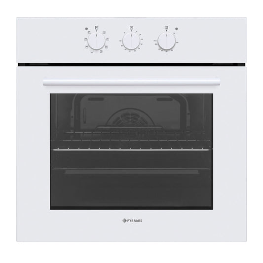 Pachet Pyramis 4P, cuptor electric incorporabil si plita gaz, 8 functii, clasa A, volum 69 litri, butoane rotative, Grill, 4 arzatoare, gratare emailate