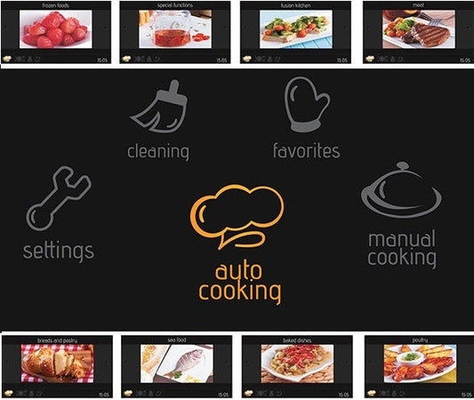Cuptor electric Pyramis 6OIN BO112V Full Black Glass, 9 functii, moduri automate de gatit, clasa A, 78 litri, Touch control
