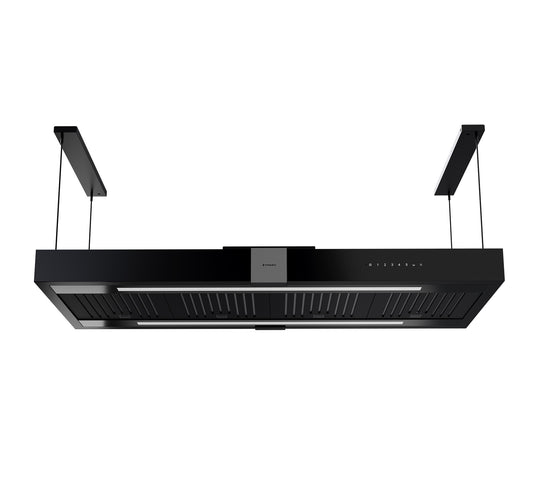 Hota decor insula Pyramis ERN1049, Control cu telecomanda, putere de absorbtie 945mc/h, 1 motor turbo, 130cm, finisaj sticla neagra