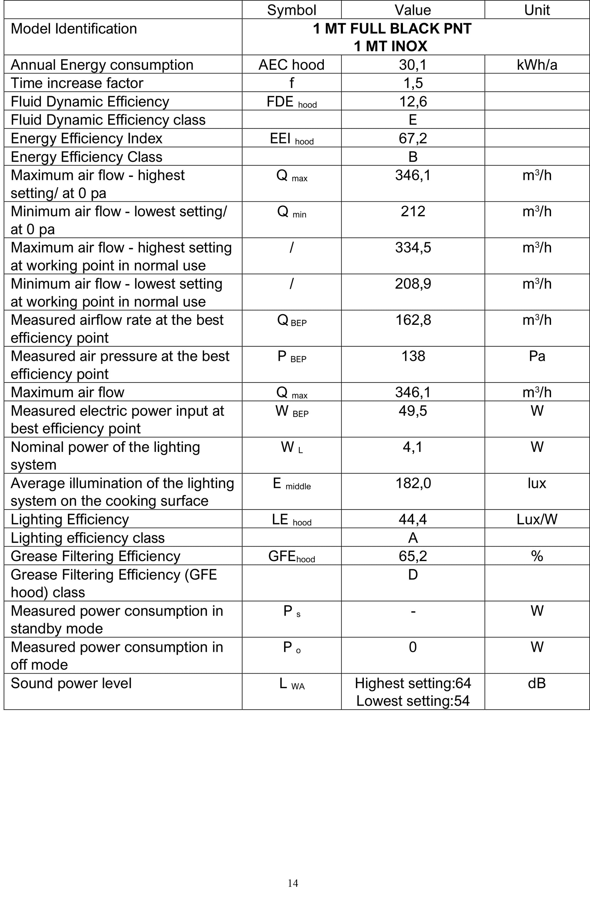 Clasa de eficienta a filtrarii: D