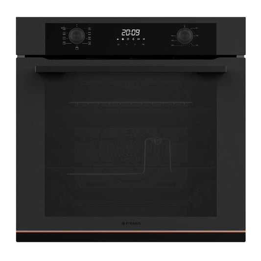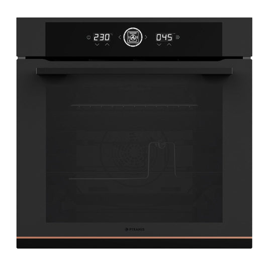 Pachet Cuptor electric, Plita gaz si Hota decorativa, Pyramis Trio Copper Line 2080 Black Glass Matt